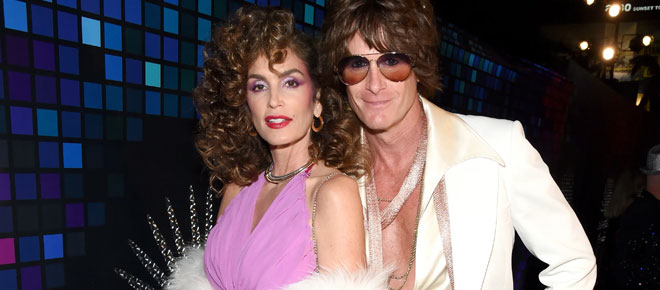 Cindy Crawford and husband Rande Gerber sported the look of disco queens for Heidi Klum's annual Halloween party. The model and the actress wore matching black dresses with silver sequins to recreate their glamorous costumes from the '70s.