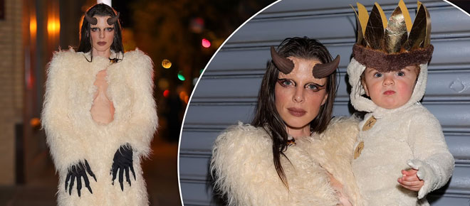 The actress opted for something a little different this year as she and her 21-month-old son Valentino dressed up as monsters from the children's book Where the Wild Things Are. The pair sported their outfits while trick-or-treating in New York City. Meanwhile, model Taylor Hill channeled a fairy tale moment in her Princess Bride costume while Gigi Hadid went as Sandy from Grease.