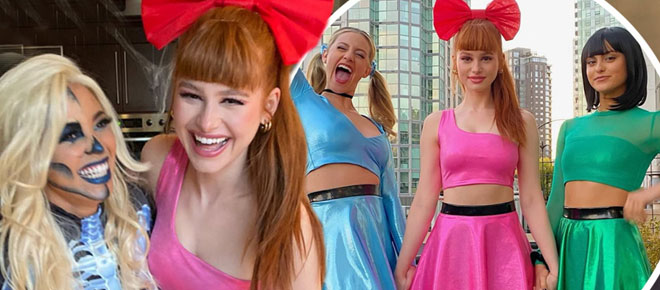 The CW show's stars pulled out all the stops for this one. "Riverdale" co-stars Lili Reinhart, Madelaine Petsch, and Camila Mendes gathered for the perfect Powerpuff Girls group costume Saturday for a Halloween baby shower for costar Vanessa Morgan, who is expecting her first child this spring. Reinhart tapped into her bubbly personality as Bubbles, sporting a skintight blue outfit and long blonde wig.